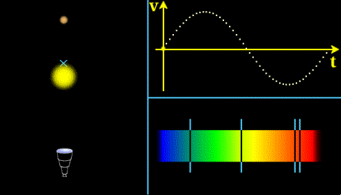 简单来讲,“径向速度法”是探测系外行星时常用的一种方法,其原理就是,在行星围绕其主恒星公转的过程中,其引力会造成主恒星发生一定程度的摆动,进而使其具备了相对于地球的径向速度(即接近地球或离开地球的运动速度),而这种速度会因为多普勒效应在其光谱中表现出来,通过对其进行分析,科学家就可以知道系外行星的存在。